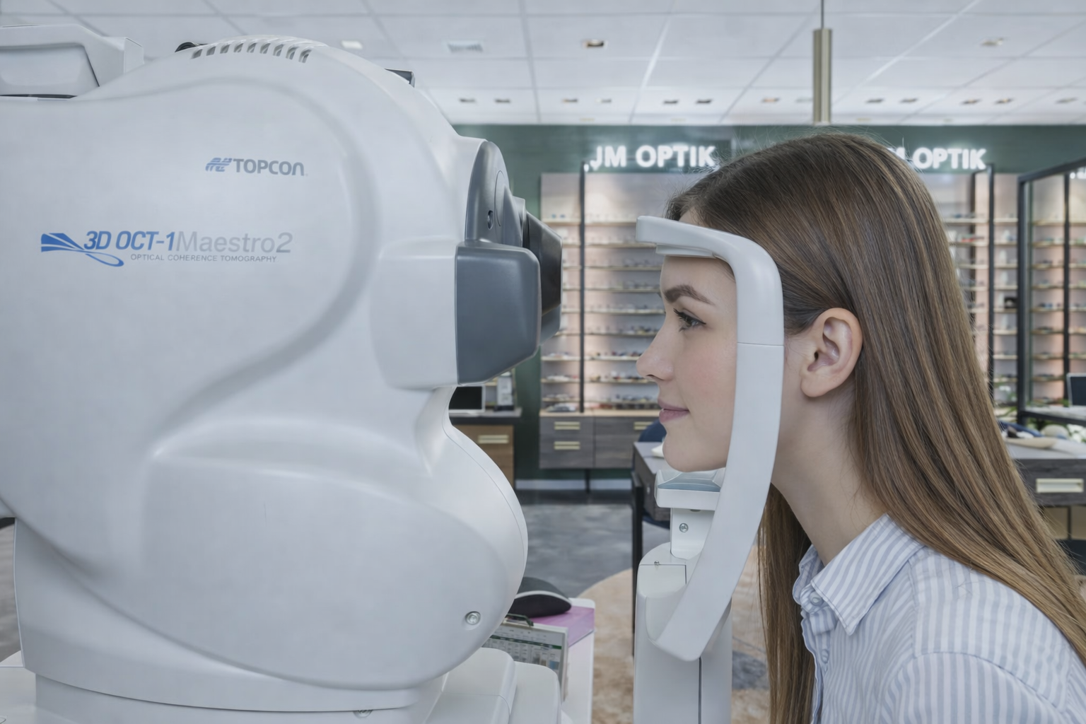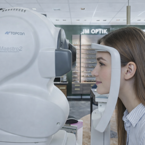 Hos JM Optik tilbyder vi nu en endnu mere grundig synsundersøgelse. Med vores nye OCT-scanner kan vi kombinere den klassiske synsprøve med et udvidet sundhedstjek af dine øjne. Det giver dig et bedre og mere detaljeret indblik i både dit syn og din øjensundhed.