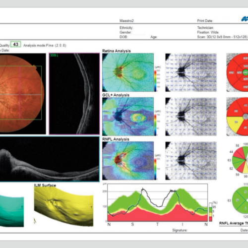 OCT (Optical Coherence Tomography) er en avanceret scanningsteknologi, som giver et detaljeret 3D-tværsnitsbillede af øjets indre – især nethinden og synsnerven. Scanningen foretages med lys og er helt smertefri.
